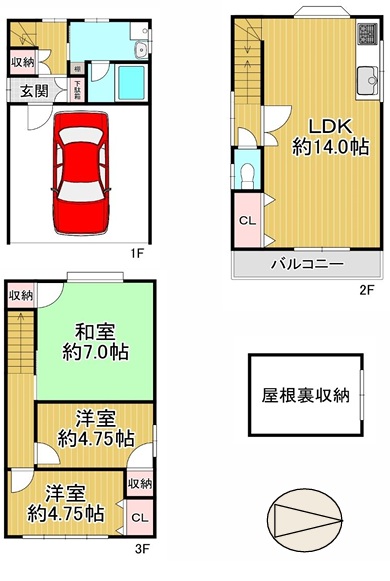 | 設備・条件 | リフォーム済 ファミリー向け 屋根裏収納 居住用物件 システムキッチン 追い焚き バス専用 浴室乾燥機 トイレ専用 バス・トイレ別 温水洗浄便座 TVドアホン 都市ガス 公営水道 排水下水 駐車場有 フローリング 陽当り良好、通風良好