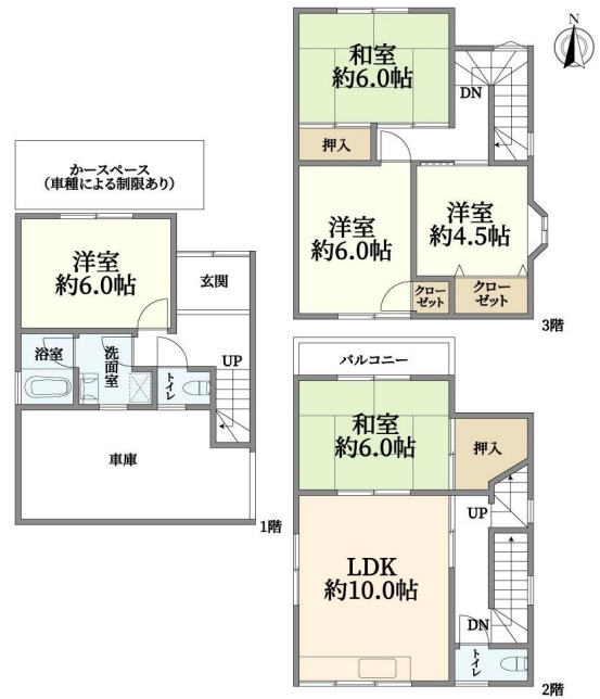 ▽ビルトインガレージ、北東角地