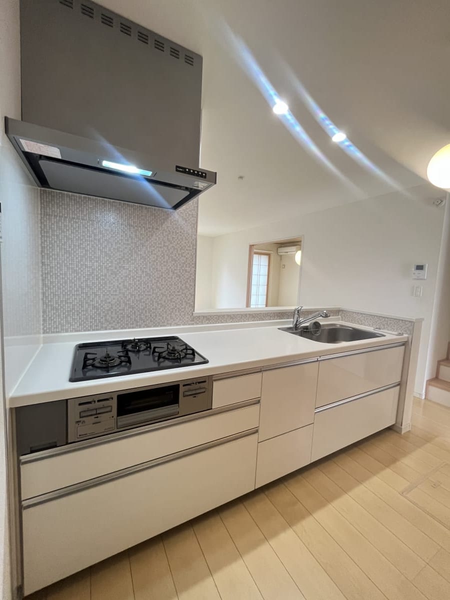 | 設備・条件 | 2人入居可 ペット可能 ファミリー向け 全居室収納 収納豊富 トイレ2ヶ所 カウンターキッチン リビング15帖以上 南面バルコニー 駐車2台可能 居住用物件 システムキッチン 洗髪洗面化粧台 バス専用 シャワー 浴室乾燥機 トイレ専用 バス・トイレ別 温水洗浄便座 床下収納 W.INクローゼット 室内洗濯機置き場 洗濯機置き場有 TVドアホン 都市ガス 公営水道 排水下水 駐車場有 バルコニー 南向きに付き陽当り良好、通風良好